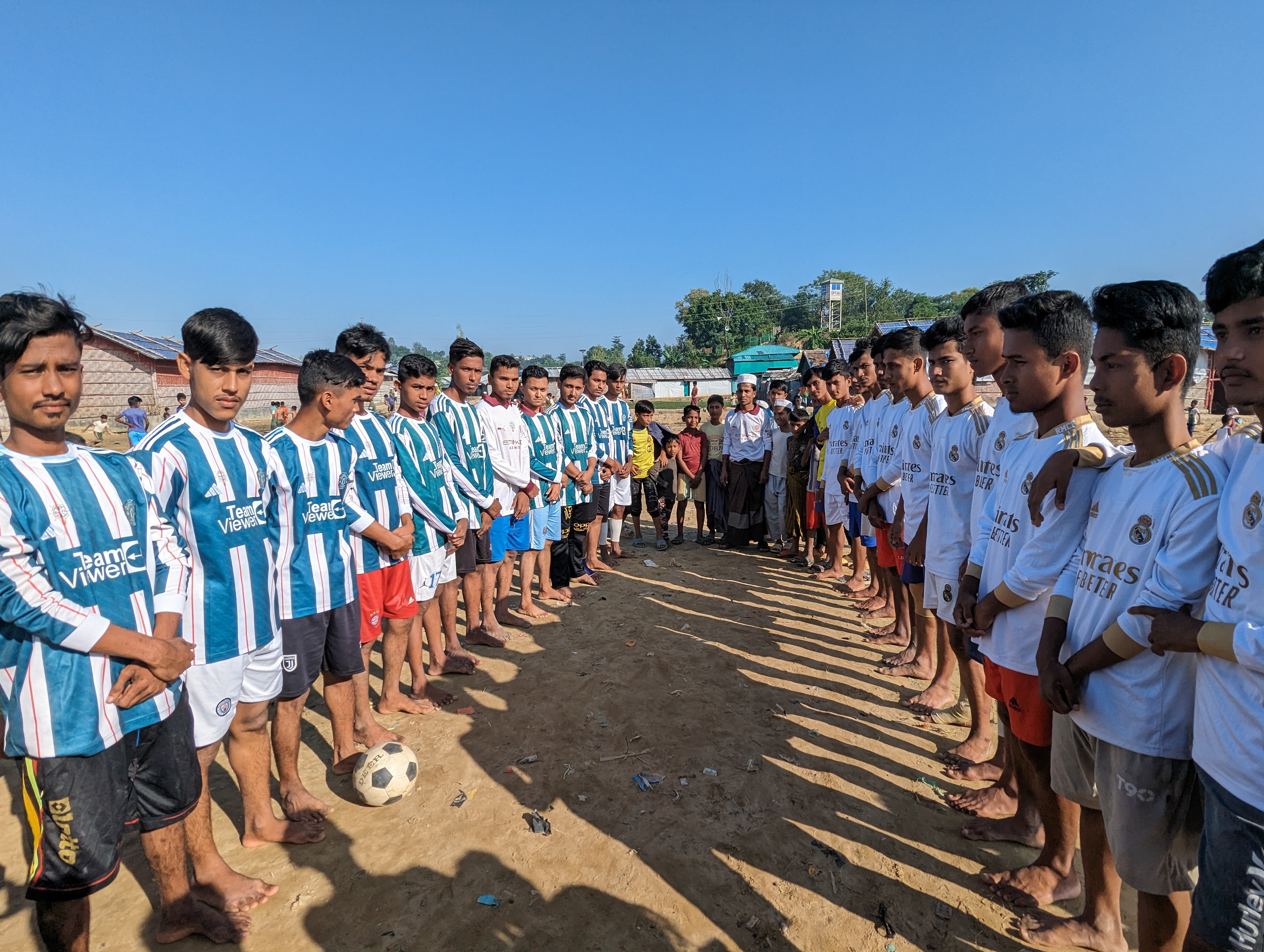 As part of the academics, teachers organize football matches breaking students into different teams. They play football inside the refugee camps.
